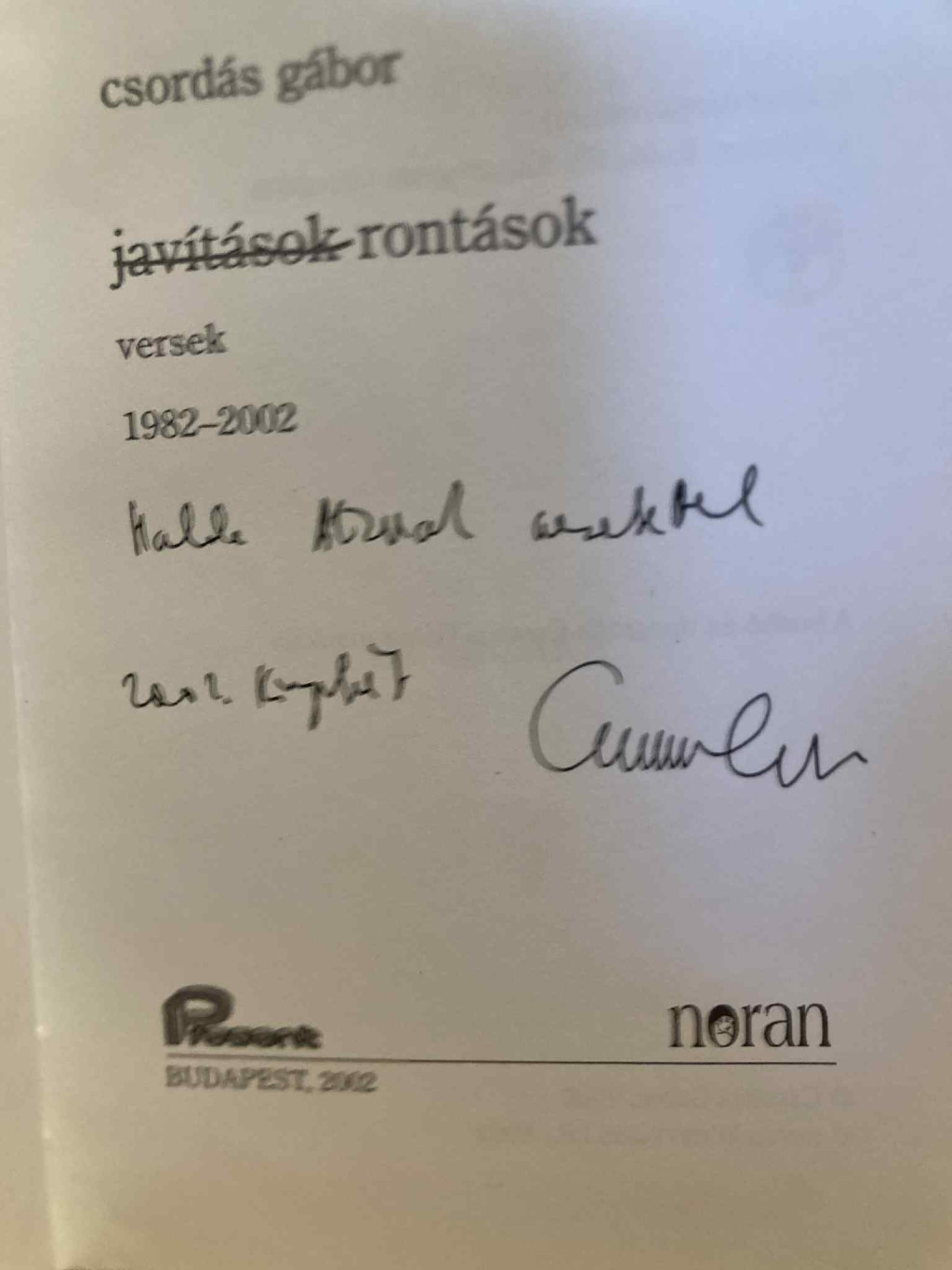 Csordás Gábor: Javítások, rontások (antikvár)