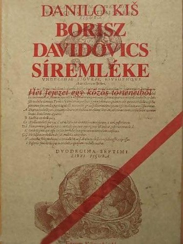 A Borisz Davidovics síremléke először az újvidéki Fórum Kiadónál jelent meg magyarul és bár nálunk tiltott gyümölcsnek, a közkönyvtárak zárolt anyagának nyilvánították, nagyon hamar elterjedt a híre. Ez a könyv vezette be Kis nevét a világirodalomban. Regény, de nemcsak regény. Novellák összefüggő láncolata? Prózában írt vers? Aligha fontos, de nem is lehetséges a pontos műfaji behatárolás. Hivatásos kommunista forradalmárok, értelmiségiek gyilkolnak Kis könyvének lapjain, és persze idővel őket is legyilkolják. Éppolyan áldozatok volnának tehát, mint a maguk áldozatai? Korántsem. A forradalom emberi vért ontó értelmiségi katonája nem várhat Danilo Kistől feloldozást, legfeljebb megértést, korrekt esetleírást. A Borisz Davidovics máig vitatott mű. Kritikusok hada elemzi, boncolgatja, értelmezi. Jugoszláviában még sajtópert is rendeztek Kis könyve ellen – plábum címén. A pert Kis nyerte meg. Ha figyelmesen olvassuk a nevezetes művet, megértjük, hogyan és miért győzedelmeskedett Danilo Kis, miért halhatatlan ez a remekmű.