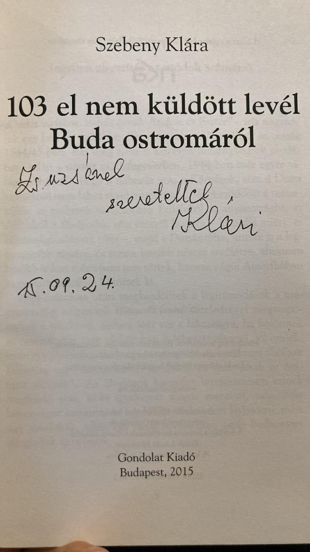 Szebeny Klára: 103 el nem küldött levél Buda ostromáról (dedikált, antikvár)