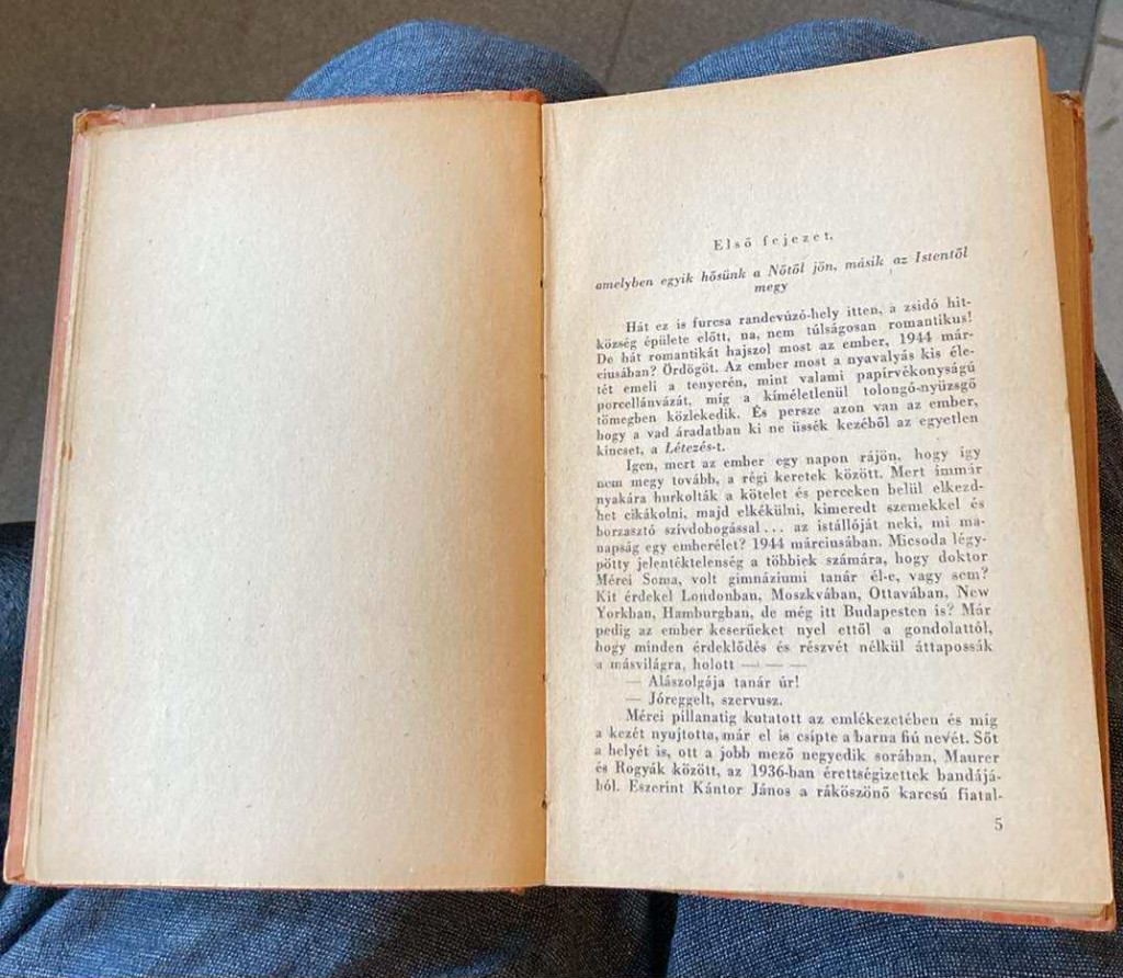 Hát ez is furcsa randevúzó-hely itten, a zsidó hitközség épülete előtt, na, nem túlságosan romantikus! De hát romantikát hajszol most az ember, 1944 márciusában? Ördögöt. Az ember most a nyavalyás kis életét emeli a tenyerén, mint valami papírvékonyságú porcellánvázát, míg a kíméletlenül tolongó-nyüzsgő tömegben közlekedik. És persze azon van az ember, hogy a vad áradatban ki ne üss-ék kezéből az egyetlen kincset, a Létezés.