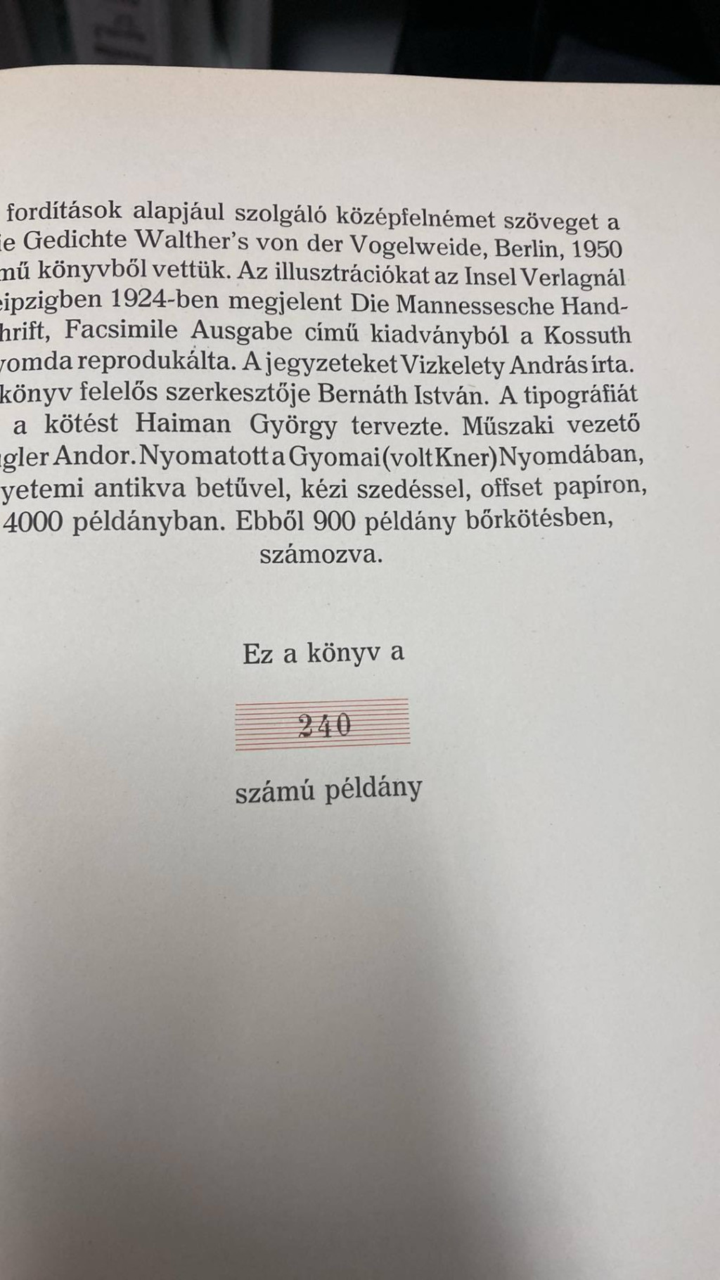 Walther von der Vogelweide válogatott versei - számozott példány (antikvár)