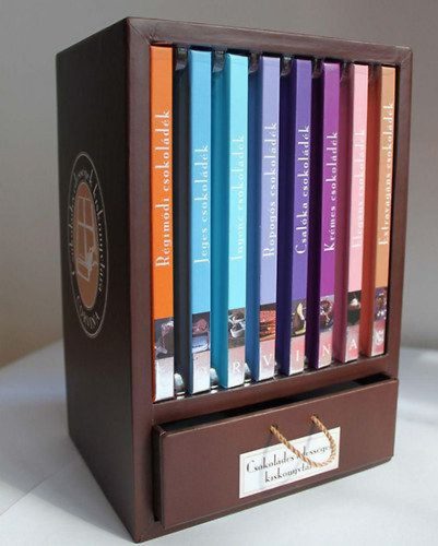 Nyolc könyvecske tele bámulatos csokoládé-receptekkel, ámulatba ejtő színes fotókkal, különleges díszdobozban. A recepteket francia cukrászok és szakácsok írták. A könyvek tárolására szolgáló doboz apró fiókja saját receptfüzetet rejt, melybe mindenki beleírhatja saját, kedvenc receptjeit. Ajándéknak vagy saját magunk örömére egyaránt kiváló! A kötetek címei: - Régimódi csokoládék - Jeges csokoládék - Ínyenc csokoládék - Ropogós csokoládék - Csalóka csokoládék - Krémes csokoládék - Elegáns csokoládék - Extravagáns csokoládék - Csokoládés édességek receptfüzete