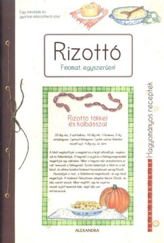Rohanó világunkban egy kiadós, gyorsan elkészíthető egytálétel nagy kincs, rengeteg időt, energiát takaríthatunk meg vele. A rizottó e kincsek közé tartozik, ráadásul szinte végtelenül variálható: húsokkal és zöldségekkel, édesen és sósan egyaránt ínycsiklandó fogás készíthető belőle. Mint minden ételnek, a rizottónak is megvannak a maga titkai - a receptek mellett e fortélyokat is megismerhetjük ebből a nosztalgikus képekkel illusztrált, bájos szakácskönyvből.