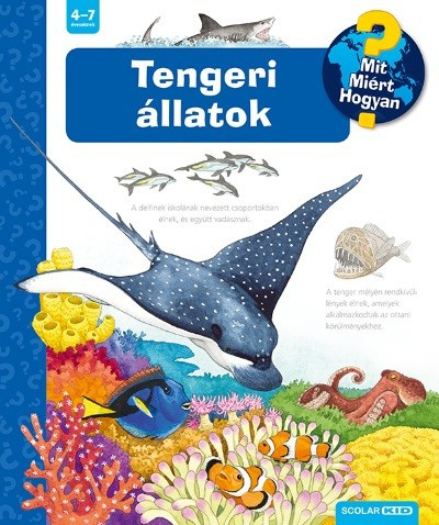 A Ravensburger népszerű Mit? Miért? Hogyan? gyermekkönyvsorozatának 53. kötetét lapozgatva az óvodások és a kisiskolások megismerhetik a tengerek és óceánok élővilágát. A könyvből megtudhatják többek között, miért nem halak a cetek, mitől olyan színpompásak a korallzátonyok, mitől olyan jó vadászok a cápák, mi él a mélytengerek sötét vizében. A már hazánkban is közkedvelt Ravensburger-játékok közé tartozó képes szakkönyvsorozat kedves illusztrációkkal, a gyerekek életkorának megfelelő információkkal ad választ a rengeteg kérdésre. Minden egyes oldal új témakört jár körül, melyek részletgazdagságában a felnőttek segíthetnek eligazodni, akár egy-egy óvodai vagy kisiskolás foglalkozás keretében. A sorozat nyomdai kivitelezése egyedülállóan magas színvonalú. Fő különlegessége, hogy minden könyv közel 50 titkos ablakot rejt, melyek fedelét felnyitva a gyerekek kielégíthetik kíváncsiságukat. A sorozat kötetei: 1. Az építkezésen 2. A mi óvodánk 3. A tanyán 4. Időjárásunk 5. Közlekedj okosan! 6. Az óra és az idő 7. Az autók 8. A számok felfedezése 9. Fedezd fel a tested! 10. A világűr felfedezése 11. Teherautók, markológépek és traktorok 12. Állatok és kicsinyeik 13. Lovak és pónik 14. Hogyan működik? Technika az otthonunkban 15. A tűzoltók 16. A cirkusz 17. A vonatok 18. Dinoszauruszok 19. A kalózok 20. Honnan jön a kisbaba? 21. A rovarok 22. A lovagvár 23. Fedezd fel az érzékszerveid! 24. A foci 25. Az állatkertben 26. Földünk 27. Háziállatok 28. Veszélyes állatok 29. A gyerekorvosnál 30. Felfedezés és kísérletezés 31. Mit eszünk? 32. A balett 33. Gépek a gazdaságban 34. Mi történik a kórházban? 35. Repülővel utazunk 36. Karácsony 37. Bálnák és delfinek 38. A vikingek 39. Indiánok 40. Fedezd fel az erdőt! 41. Fedezd fel a hajókat! 42. Hercegnők 43. A rómaiak 44. Fedezd fel az óriásjárműveket! 45. Fedezd fel a hegyeket! 46. Vallások a világban 47. A természet csodái 48. Rendőrség 49. Iskolás leszek 50. A kerékpár 51. Kalandorok és felfedezők 52. Akcióban az életmentők 53. Tengeri állatok 54. Óvjuk a környezetet! + Első lexikonom Első nagy állatatlaszom Óriás felfedezőkönyv