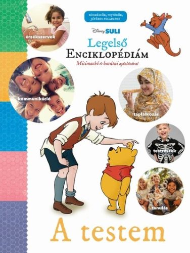 Fejtsd meg a csodálatos emberi test titkait! Micimackó és barátai segítenek, hogy megtudd, mi történik a testedben, amikor lélegzel, alszol, eszel, írsz vagy éppen sétálsz. Megismerheted az öt érzékszerv felépítését, megvizsgálhatod, mire van szüksége a testednek, ahhoz, hogy megfelelően működjön, és azt is megfigyelheted, hogyan kommunikálunk egymással. A Legelső Enciklopédiámban látható fantasztikus fényképek azonnal felkeltik a gyerekek figyelmét, a megannyi szórakoztató információ hallatán biztosan sokat nevetnek majd és közben rengeteget tanulnak. A fejezetek végén található játékos feladatok pedig garantáltan vidám élménnyé teszik a közös olvasást!